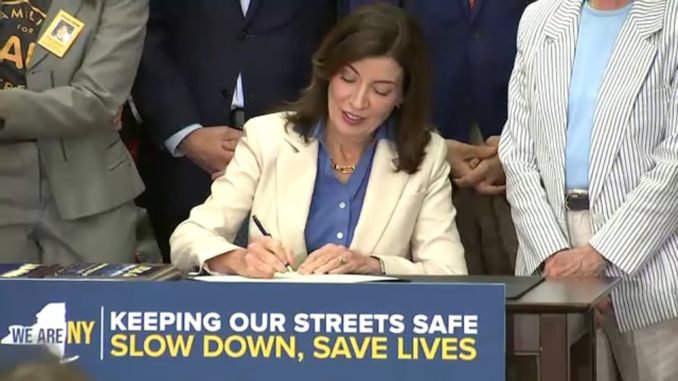 Губернатор штата Нью-Йорк Кэти Хокул в пятницу подписала закон, разрешающий камерам контроля скорости работать 24 часа в сутки, 7 дней в неделю в Нью-Йорке. Ранее камеры работали только в будние дни, с 6 утра до 10 вечера. ABC7 New York news video. New York Midtown News online - Независимые новости США и Нью-Йорка на русском языке - видео онлайн.