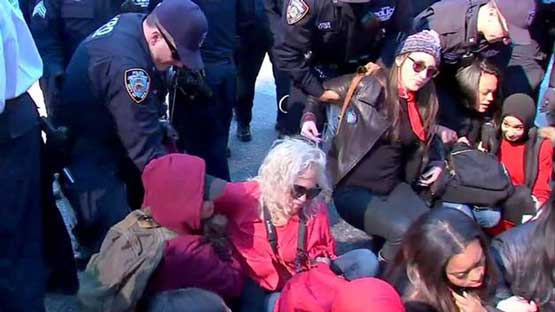В полиции Нью-Йорка заявили, что 13 женщин были арестованы перед отелем Trump International в Верхнем Вест-Сайте, (Манхеттэн) за невыполнение приказов полицейских покинуть улицу. Женщины сидели на дороге перед отелем во время акции «День без женщин».