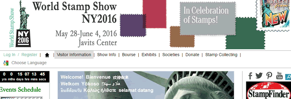 28 мая в Нью-Йорке в Джавиц Центре Мировая выставка марок 2016