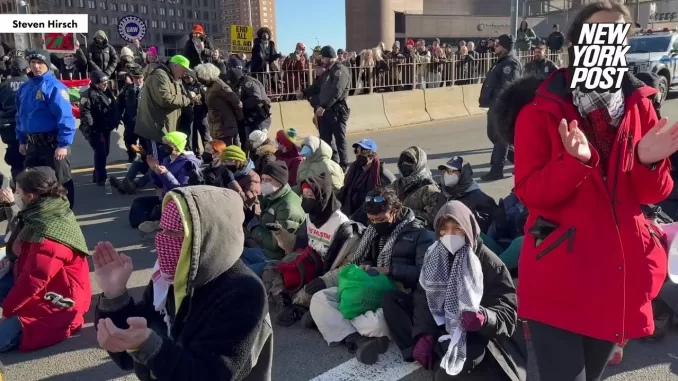325 арестованы после того, как пропалестинские протестующие заблокировали главные мосты и Holland тунель