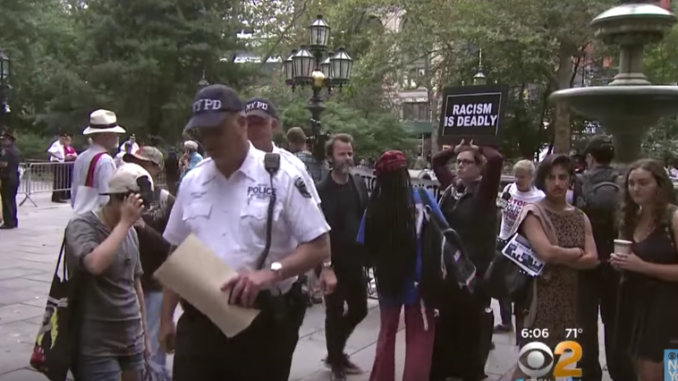 В Нижнем Манхэттене в City Hall парке собралась большая группа людей, которые поддерживают движение BlackLivesMatter. Люди вышли с плакатами против расизма и отстаивали свою позицию.