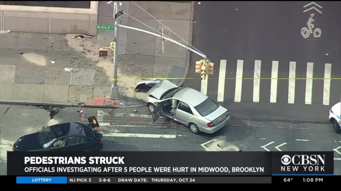 НЬЮ-ЙОРК — Утром в Бруклине несколько человек пострадали, когда автомобиль сбил группу пешеходов. Катастрофа произошла около 11:40 утра возле Бедфорд-авеню и Кампус-роуд — рядом с Бруклинским колледжем — в районе Мидвуд. Серебряная машина врезалась в столб. Черная машина также была повреждена. FDNY сказал, что по меньшей мере пять человек получили ранения. Двое были доставлены в больницу в тяжелом, но не угрожающем жизни состоянии. Другие три травмы были описаны как незначительные.