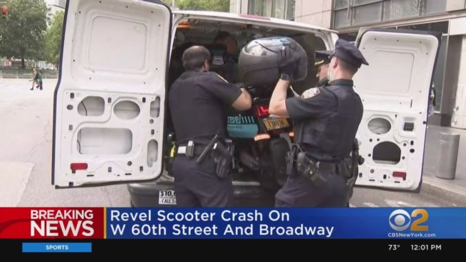 НЬЮ-ЙОРК — Пожилая женщина была ранена после того, как во вторник утром ее сбил водитель скутера Revel на Columbus Circle. Работник фургона, который видел последствия, сказал, что это была очень печальная сцена. 82-летний пострадавшая получила тяжелые травмы. Водитель скутера оставался на месте. На видео видно, как полиция Нью-Йорка увозит скутер после инцидента, который произошел около 7:30 утра. Полиция сообщила, что водитель скутера сбил женщину на перекрестке когда двигался по Бродвею в направлении на юг по 60-й улице. Это был последний инцидент со скутерами Revel. Компания временно уже закрывалась летом, после гибели трех человек, в том числе репортера Нины Капур. На ней, как и на многих других участниках аварий, не было шлема. Среди других новых протоколов безопасности, Revel теперь требует, чтобы пользователи делали селфи, показывая, что они одели шлем.