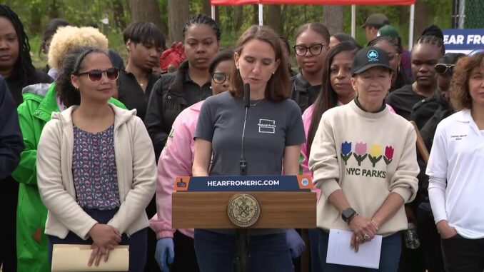 Мэр Эрик Адамс выступил с речью с Управлением парками Нью-Йорка в День Земли