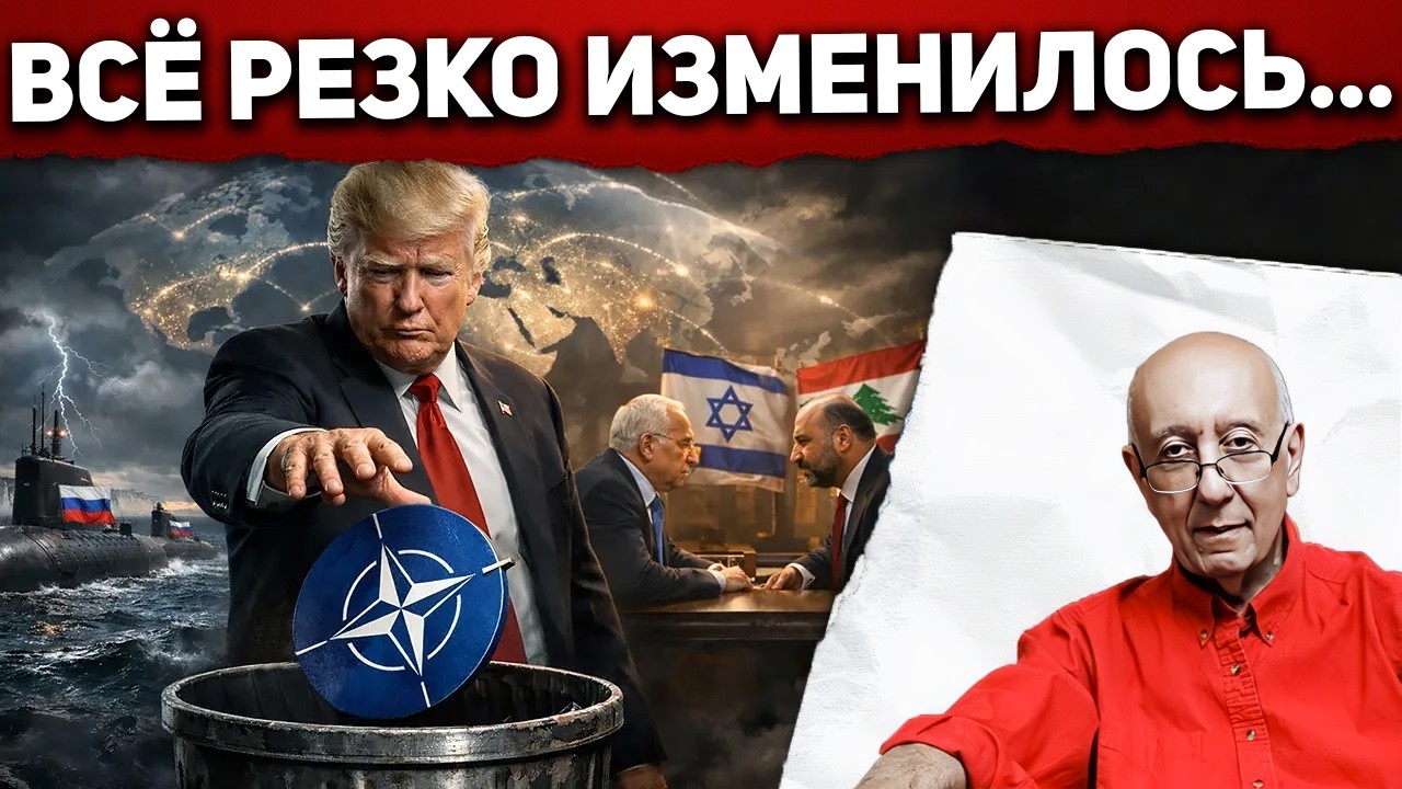 Главная линия его выступления такая: мир входит в период резкого перелома, где привычные союзы и красивые декларации больше не работают. Он связывает сразу три сюжета в одну картину: кризис НАТО, противостояние США и Ирана, а также неожиданный дипломатический сдвиг между Израилем и Ливаном. Для него это не три отдельные новости, а признаки одного большого процесса — старый порядок рассыпается, а новый строится силой, давлением и прагматизмом, а не словами. Уже в начале он задаёт тон: НАТО будто бы «умоляет Трампа о прощении», Россия дерзко действует у берегов Британии, а Израиль и Ливан впервые за десятилетия идут на прямой контакт.