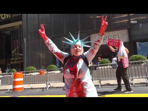 Очередное «преступление» и «вандплизм»  против «мурала»  BLM  который  «любимый»  мэр Ньорка Билл де Блазио расположил  напротив небоскреба Трампа на Пятой Авеню  «совершила»  Джулиетта Германота ( Juliett Germanotta).