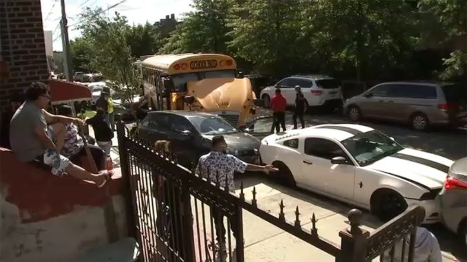 НЬЮ-ЙОРК. ПОДРОСТКИ УГНАЛИ ШКОЛЬНЫЙ АВТОБУС И РАЗБИЛИ ИМ ЧЕТЫРЕ МАШИНЫ ПРИ ПАРКОВКЕ….