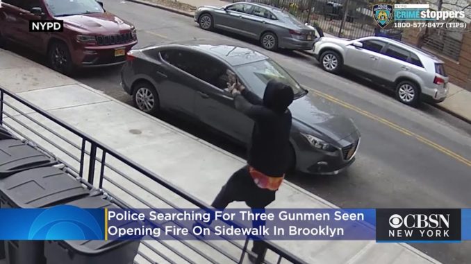 БРУКЛИН НЬЮ-ЙОРК. ТРОЕ СТРЕЛЯЮЩИХ НА ТРОТУАРЕ НА ВИДЕО