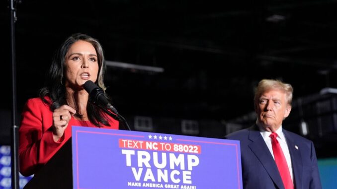 Бывший кандидат в президенты от Демократической партии Тулси Габбард ( Tulsi Gabbard, ) объявила ликующей толпе на митинге в поддержку Трампа, что она присоединилась к Республиканской партии, назвав ее партией равенства и здравого смысла.
