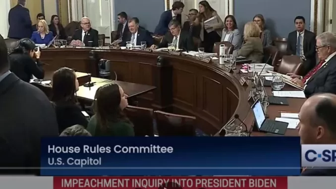 Комитет по правилам Палаты представителей собрался 12 декабря 2023 г., чтобы обсудить правило, которое позволит комитетам Палаты представителей по методам и средствам, надзору и подотчетности, а также судебным комитетам продолжать расследование по импичменту президента Байдена. Члены-демократы предложили поправки и обсудили с коллегами-республиканцами различные вопросы, включая прецедент, созданный расследованием импичмента бывшего президента Трампа в 2019 году, обвинения против президента Байдена, а также прозрачность и подотчетность в процессе расследования импичмента.