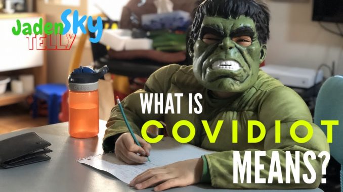 Слово появилось путем слияния названия вируса COVID-19 и слова «идиот». Еще одно значение этого термина — люди, игнорирующие меры предосторожности в период пандемии. В качестве примера такого употребления приведено предложение: «Этот ковидиот обнимает всех, кого видит».