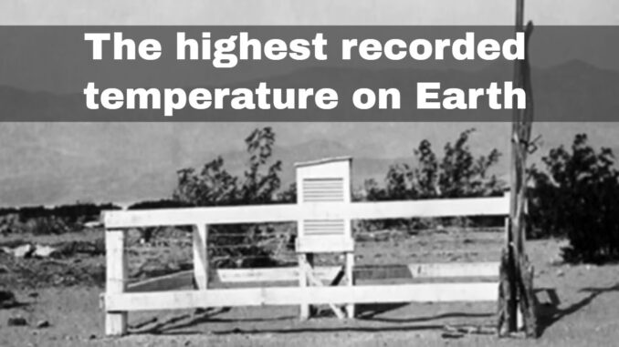 В свою очередь самая высокая температура зафиксированная на земле была больше чем 100 лет назад — в 1913 году.- +56,7 градуса Цельсия , Фернес-Крик, Долина Смерти, Калифорния, США