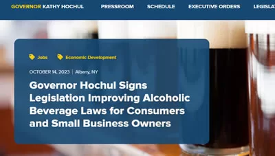 Губернатор Нью-Йорка Кэти Хоукул подписала пакет законов, которые улучшат законы Нью-Йорка, касающиеся алкогольных напитков, с целью расширить возможности для потребителей и поддержать малый бизнес Нью-Йорка в секторе алкогольных напитков.