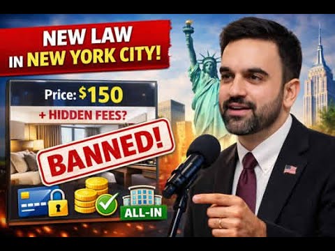 Мэр Зохран Мамдани объявляет, что Департамент по защите прав потребителей и работников (DCWP) выпустил окончательное правило (final rule), которое запрещает “скрытые доплаты” (junk fees) при бронировании гостиниц — то, что часто называется destination/resort/hospitality service fees.