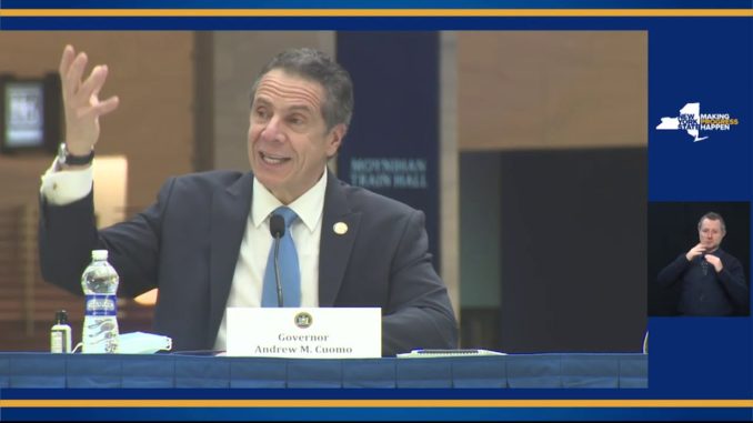 Нью-Йорк. На открытии нового Moynihan Train Hall выступил губернатор штата Нью-Йорк Эндрю Куомо.