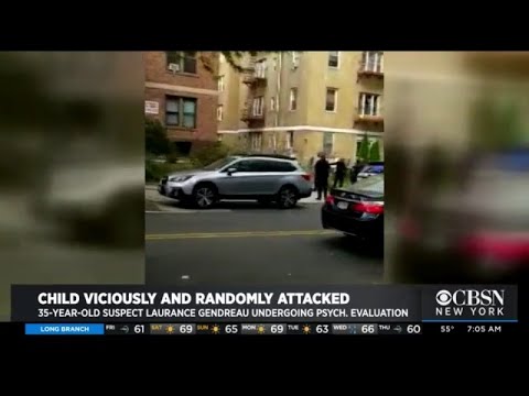 Около 5 часов вечером в Квинсе бездомный вероятно с психическим растройством биполярность напал на семилетнего мальчика , который ожидал на  улице с 10 братом доставки пицы.