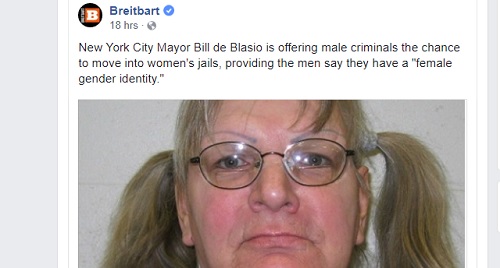 Нью-Йорк. Как говориться в статье Breitbart — мер Нью-Йорка предложил преступникам — мужчинам дать право сидеть в женских камерах, если осужденные уголовники — мужчины скажут, что они имеют женскую идентичность — дословно «New York City Mayor Bill de Blasio is offering male criminals the chance to move into women’s jails, providing the men say they have a «female gender identity.»