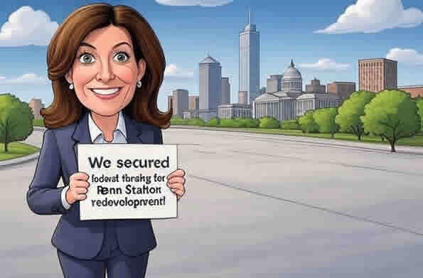 Губернатор Кэти Хочул прилагает все усилия, чтобы Пенсильванский вокзал стал таким же блестящим, какого заслуживают жители Нью-Йорка. Получив федеральное финансирование в апреле 2025 года благодаря переговорам с президентом Трампом, она высвободила более 1 миллиарда долларов на другие ключевые проекты. Министр транспорта Даффи сейчас ищет смелые проектные решения, и этот суровый городской транспортный узел уверенно превращается в ослепительный центр, достойный Большого Яблока.
