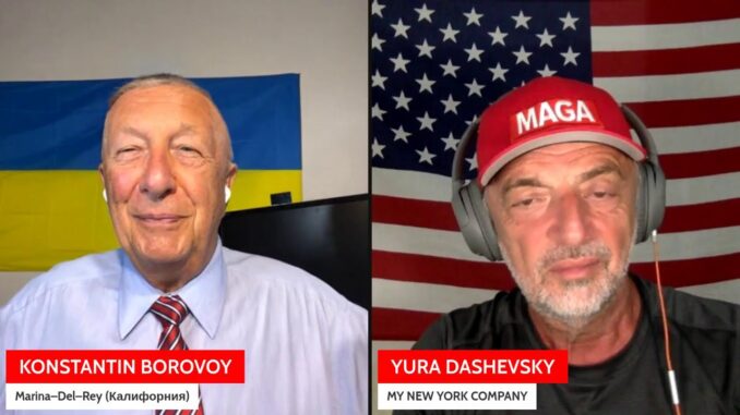 Нью-Йоркский журналист и политик Юрий Дашевский из своей студии в Бруклин, Нью-Йорк берет интервью у эмигранта из России, жителя Калифорнии Константина Борового о взглядах Борового на происходящее в США, Украине и России.