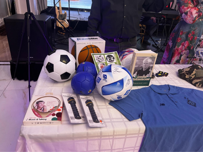 После официальной части состоялись благотворительная лотерея и аукцион, наполненные теплом и высоким смыслом. Разыгрывались книги с автографом о Лобановском, футболки с автографами членов футбольной команды Украины , мячи, сувениры и сладости.