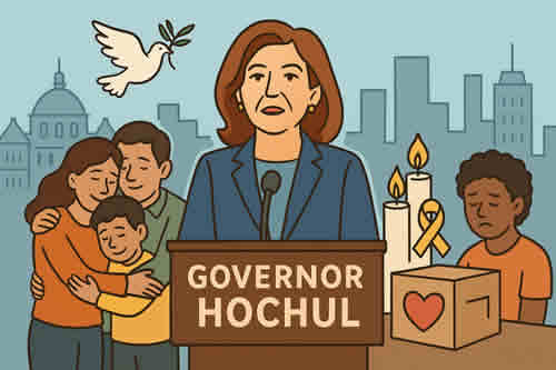 Губернатор Нью-Йорка Кэти Хокул отметила возвращение израильских заложников после двух лет страданий, вознеся молитвы об их исцелении и почтив память жертв, включая Омера Нойтру и Итая Чена. Вспоминая свой визит в Израиль после 7 октября и встречи с скорбящими семьями, некоторые из которых приехали из Нью-Йорка, Хочул поблагодарила администрацию США за помощь в освобождении заложников. Она призвала к постоянному прекращению огня, скорейшей доставке гуманитарной помощи семьям в Газе и началу новой главы прочного мира и свободы как для израильтян, так и для палестинцев.