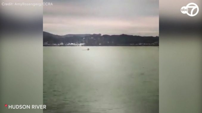 Работники «The Cortlandt Community Rowing Association» смогли снять на видео оленя, переплывавшего через Гудзон от Stony Point к Verplanck.