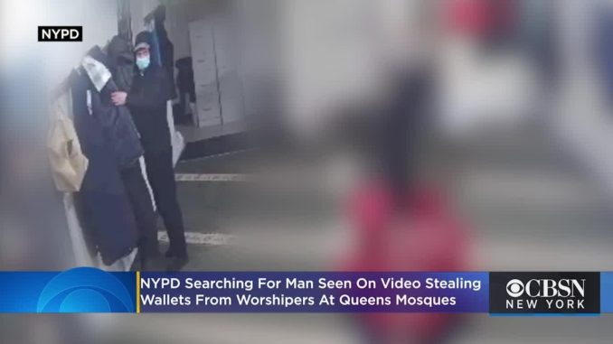 Камера наблюдения засняла вора, обчищающего карманы молящихся в мечети в Нью-Йоркском районе Квинс.