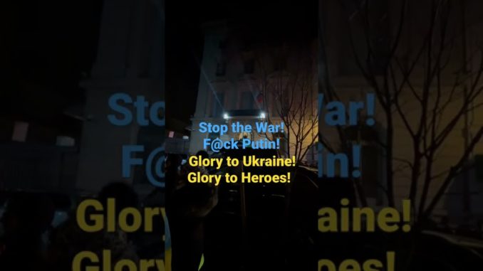 НЬЮ-ЙОРК. НОЧНОЙ МИТИНГ У КОНСУЛЬСТВА РОССИИ ПРОТИВ ПУТИНСКОЙ АГРЕССИИ ПРОТИВ УКРАИНЫ — 24 ФЕВРАЛЯ 2022 ГОДА
