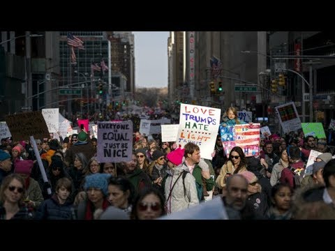 Странный «Женский марщ» «за права женшин» — в этом году возглавляемый обвиняемыми в открытом антисемитских высказыввния «активистками» прпшел по Америке — в том числе и в Нью-Йорке. Традиционно, «женские марши» спонсируемые Соросом и людьми и организвациями имеют откровенно анти-Трамповский характер и участники и участницы «иаршей» насят на голове шапочки — пусси, но в этом году несколько основных оргвнизаторов марша уже традиционно были в мусульманских головных уборах … и в Нью-Йорке к участницам марша вышли … чернокожие девушки — подростки в бейсболках «Трампа» — красных с традиционной надписью «Сдеоаем Америку прекрасной снова» ..