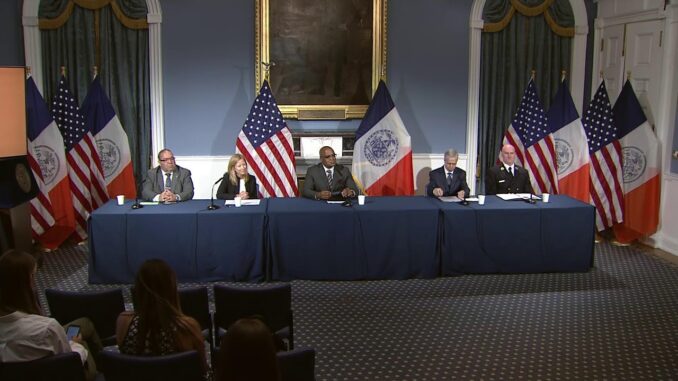 Заместитель мэра по вопросам общественной безопасности Филип Бэнкс проводит брифинг по вопросам общественной безопасности в Нью-Йорке