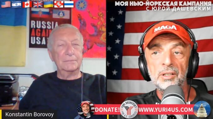 Из студии в Бруклине, Нью-Йорк Юрий Дашевский вживую с Константином Боровым , комментатором, автором книг , депутатом Думы России второго созыва проживающего в Лос-Анджелесе, Калифорния как возникает и складывается гражданское общество, на примере СССР/России; российская тяга к фашизму возникла не вчера; планы и мысли; тонизирующая сила youtube.