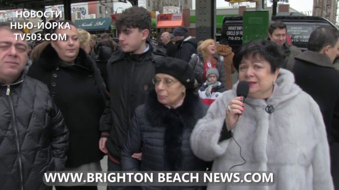 Мария Логунова на Брайтон Бич с родственниками и семьей Софы и Марка, умершей хозяйки знаменитого «русского» ресторана Националь и ставшего легендой магазина — гастронома «Интернешинал» на Брайтон Бич Авеню — после митинга, посвященного наименованию части улиц района Брайтон Бич ( Brighton Beach ) в Sofia Vinokurov and Mark Rakhman place .