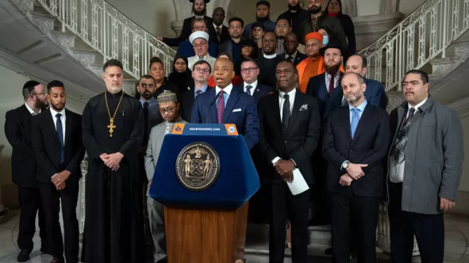 Мэр Эрик Адамс: спасибо. Спасибо, пастор. И я думаю, что вы сделали мощное заявление о том, что мы не измеряем, насколько любовь распространяется по нашему городу, мы иногда склоняемся к негативу. Но когда я думаю о том, что делают Дома Хабада не только в городе, но и по всей стране, и просто предоставляют людям места для отдыха. Я думаю о различных продовольственных кладовых, которыми в настоящее время управляют наши религиозные лидеры, наши церкви, наши синагоги, наши мечети. Я думаю о том, что делают наши сикхские лидеры, каждый день обеспечивая едой нуждающихся, кормя тысячи людей. Я узнал об этом во время Covid‑19. И я думаю о том, как мусульмане отдают долг, и о том, как они присоединяются ко мне по средам, раздавая еду и в течение недели кормя людей, переживших тяжелые времена. Есть так много символов и существенных вещей, которые делают люди веры. Они стали общественно-нравственным сознанием нашего города и всей нашей страны. И это подчеркивается, когда у нас есть такие случаи ненависти, но я думаю, что нам нужно опираться на проявления любви, когда люди раздают носки, пальто и одежду, кормят людей, людей, которые добровольно жертвуют свое время, помогая нам с мигрантами и просителями убежища. Есть очень много способов показать, насколько мы велики как город, и сегодняшний день является еще одним символом этого. Вчера вечером состоялась первая ночь Хануки. Я был в Вашингтоне на общенациональном собрании по случаю празднования Хануки с разными людьми, которые празднуют Хануку и признают это празднование. И это был срез людей. Там были не только люди еврейской веры, но и американцы, приехавшие в Вашингтон. Этот фестиваль огней напоминает нам, что каждое действие света способно зажечь надежду, и мы никогда не должны забывать об этом. И я очень благодарен, что здесь, в этом городе, мы принимаем эту концепцию и философию. И именно поэтому мне согревает сердце то, что у меня здесь, вы знаете, даже двое из наших избранных, президент округа Рейносо, который представляет самый большой район в городе Нью-Йорке, и член Законодательного собрания Дженифер Раджкумар, которую вы видите, пересекая город, собирая вместе различные группы, не позволяя границам места ее сбора помешать нам собраться вместе. Мы знаем, что мы построены на религиозной и расовой терпимости. Вот кем мы являемся как город, город иммигрантов и город разнообразия, город, где люди со всего мира могут жить бок о бок в гармонии, независимо от национальности, независимо от того, где они молятся. Здесь, в Нью-Йорке, эта вера является основой того, кем мы являемся; и в этот момент повышенной напряженности во всем мире как никогда важно, чтобы мы выступили вместе как единое целое против растущей волны ненависти и религиозной нетерпимости. И мы это видим и чувствуем. Это приносит определенный уровень опасений. Неважно, носите ли вы хиджаб, ермолку или тюрбан. Люди, которые представляют различные группы, имеют крест на шее, какой-то символ их религиозных убеждений, им не обязательно на самом деле испытывать ненависть, но когда они слышат о ненависти, это вызывает определенный уровень страха и запугивания, и именно поэтому мы здесь сегодня. А вчера вечером, незадолго до начала первого вечера Хануки, прозвучали выстрелы возле Храма Исраэль в Олбани. А буквально вчера менора в парке Хабад Сансет в Бр