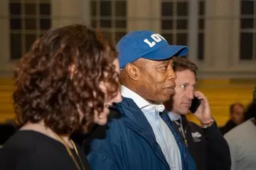 Мэр Нью-Йорка Эрик Адамс посетил среднюю школу Джеймса Мэдисона в Бруклине во вторник вечером и увидел семьи просителей убежища, спящие в аудитории и спортзале.