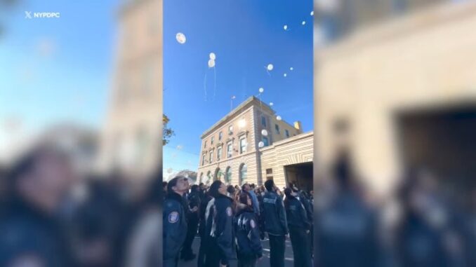 БЕЛМОНТ, Бронкс — Сегодня было выполнено обещание не забывать о молодой жертве убийства, которая собиралась стать полицейским. Сотрудники полиции Нью-Йорка выпустили воздушные шары в поддержку Лесандро «Джуниора» Гусмана.