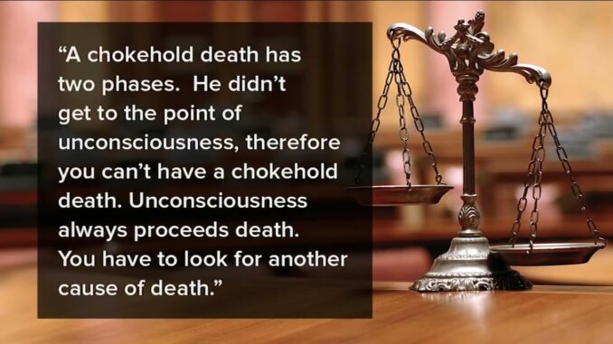 Доктор Сатиш Чандру — эксперт из Техаса, который утверждает, что Джордан Нили не мог умереть от удушающего захвата. Среди несоответствий он назвал: расположение и степень синяков на шее Нили, а также небольшое количество петехий — небольших красных пятен, вызванных подкожным кровотечением — на его веках. Доктор Чандру дал показания о двух фазах смерти от удушающего захвата: первая фаза — потеря сознания, вторая фаза — смерть.