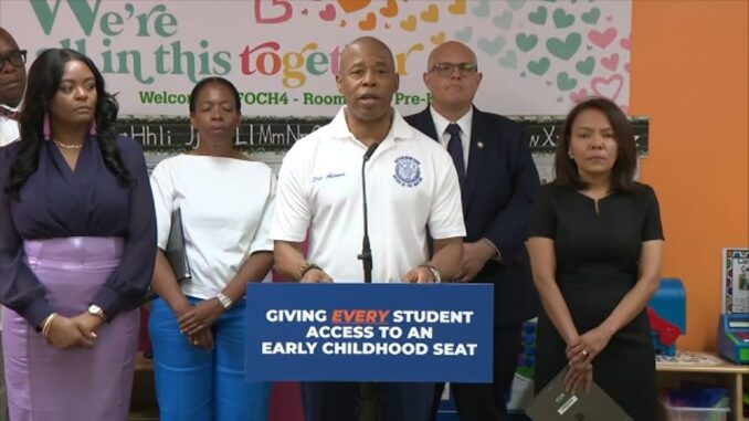 Мэр Эрик Адамс объявил эту новость в четверг, когда к нему присоединились члены городского совета и городские чиновники, чтобы представить планы Нью-Йорка по дошкольному образованию, спрос на которое в этом году оказался рекордным.