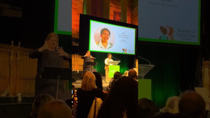 В прошлом месяце 17-летняя Сара Лин была названа «Будущей женщиной отличия» организацией «Девушки-скауты Большого Нью-Йорка» за ее работу по повышению доступности кинотеатров для глухих и слабослышащих.