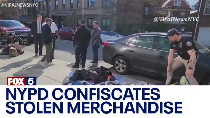 Во вторник полиция Нью-Йорка столкнулась с торговцами-мигрантами и конфисковала их, по-видимому, украденные товары в проблемном квартале Джексон-Хайтс, известном своим незаконным рынком под открытым небом и бродящими проститутками.