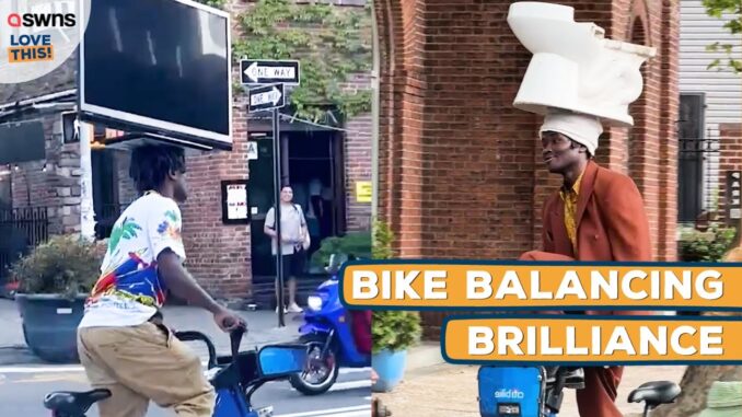 На этой неделе в сети появилось вирусное видео, на котором местный каскадер Лех-Бой Габриэль Дэвис едет на велосипеде Citi по Нассау-авеню в Гринпойнте, удерживая при этом холодильник на своей голове.