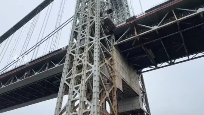 В субботу днем был замечен человек, взбирающийся на мост Джорджа Вашингтона, что вызвало задержку движения, поскольку полиция Нью-Йорка пыталась захватить альпиниста спец снаряжением .