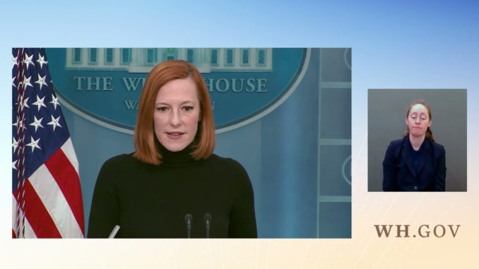 ГЛАВНЫЙ ВРАГ СЕГОДНЯ У БЕЛОГО ДОМА — КЛИМАТИЧЕСКИЙ КРИЗИС А НЕ ПУТИН… И очередная ложь пресс секретаря Белого Дома о том, что предыдущая администрация якобы уменьшала помошь Украине ( а не Джо Байден первыми же указами уменьшил суммы ) … Ответ пресс секретаря на судебную отмену обязательного ношения масок от вируса КОВИД-19 в самолетах. На вопрос о том что маски не останавливают распространение КОВИД ответ Псаки тоже не был понятен… Вопрос о том, чтобы признать Россию спонсором терроризма — сегодня всего три страны включая Судан и Иран — но не Россия.