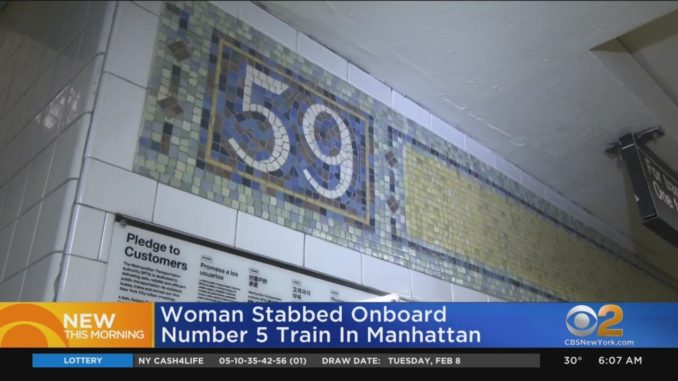 Полиция разыскиевает нападавшую, нанесшую 39-летней женщине ножевые раны вчера в 9 часов вечера в на станции линии 5 номера сабвея на станции 59 стрит в Манхеттене. Нападение произошло во время спора. Видео CBS New York news.